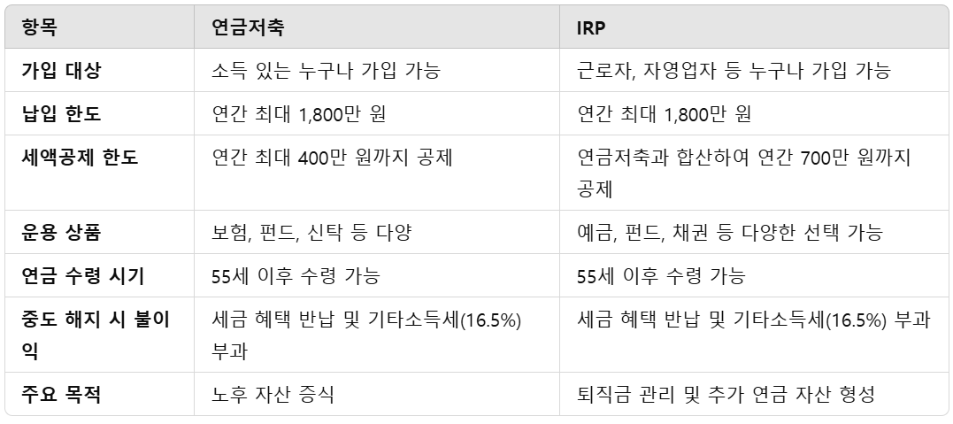 3. 연금저축과 IRP의 비교 및 차이점 요약