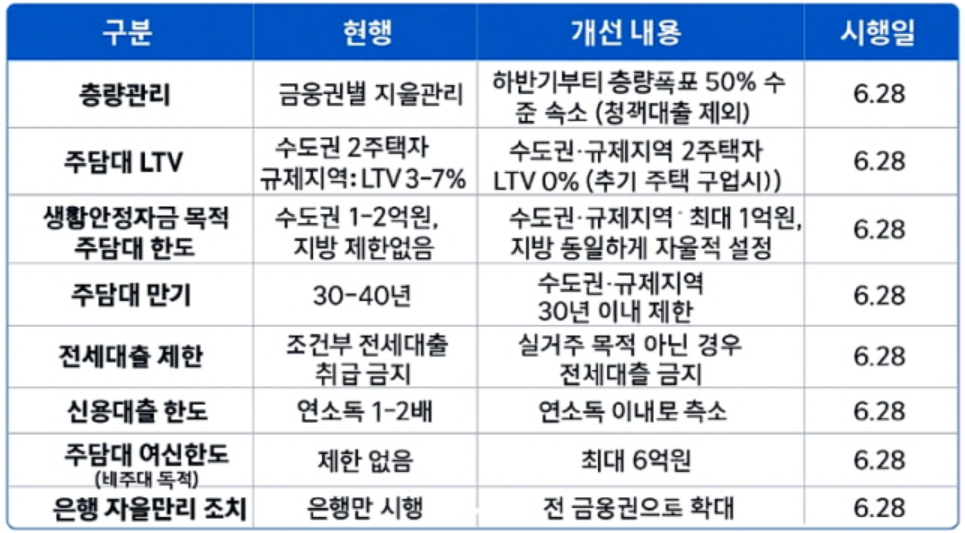 이상으로 2025년 새롭게 바뀐 부동산 정책들을 핵심들만 파악해 보았는데요. 해당 내용을 통해서 내 집 마련에 철저한 계획을 세우셔서 도움 되시기를 바라겠습니다. 마지막으로 상기 내용들 한눈에 보시기 편하도록 정리해 드리겠습니다.