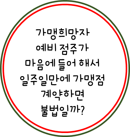 이 상황에서 많은 분들이 이상한 게 없을 것이라 생각하실 텐데요. 실제로 가맹사업법 상으로 많은 법률을 어기고 계약을 했다고 볼 수 있습니다.