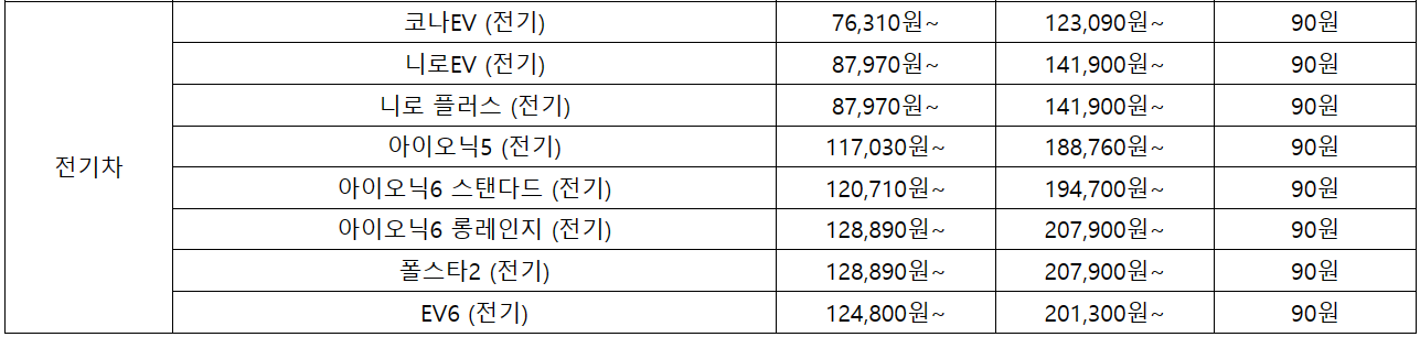 - 반납 시 결제요금은 주행거리에 따라 km당 주행요금이 부과되는데요. 참고로 하이패스 이용 시에는 주행요금과 합산되어 청구됩니다. 차량에 따라 금액은 상이한데, 자세한 금액표는 아래와 같습니다.