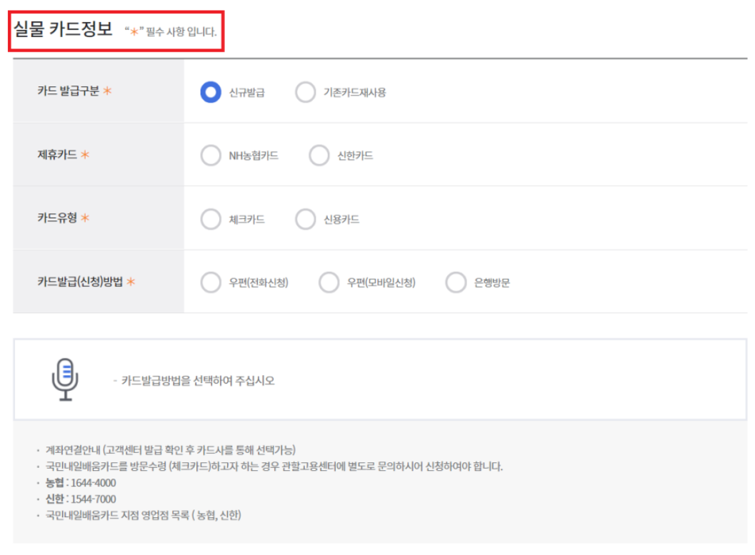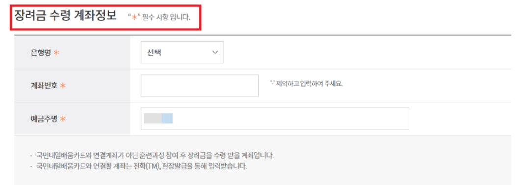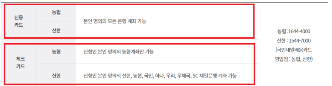 5. 신용카드 및 체크카드 중에 선택한 후에 장려금 수령 계좌정보 넣기