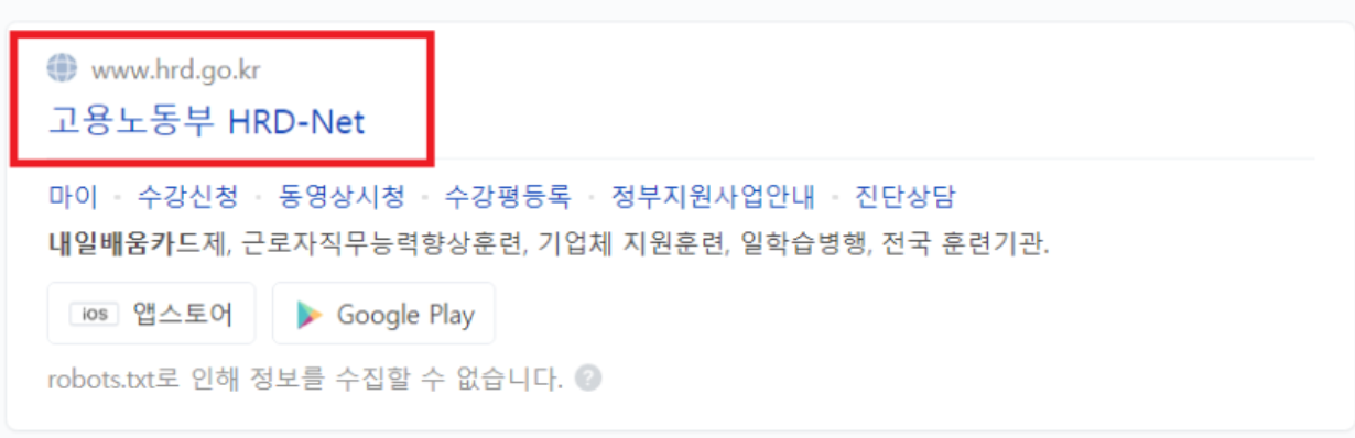 1. 인터넷에서 내일 배움 카드를 검색하여 고용노동부 HRD-Net으로 접속하기