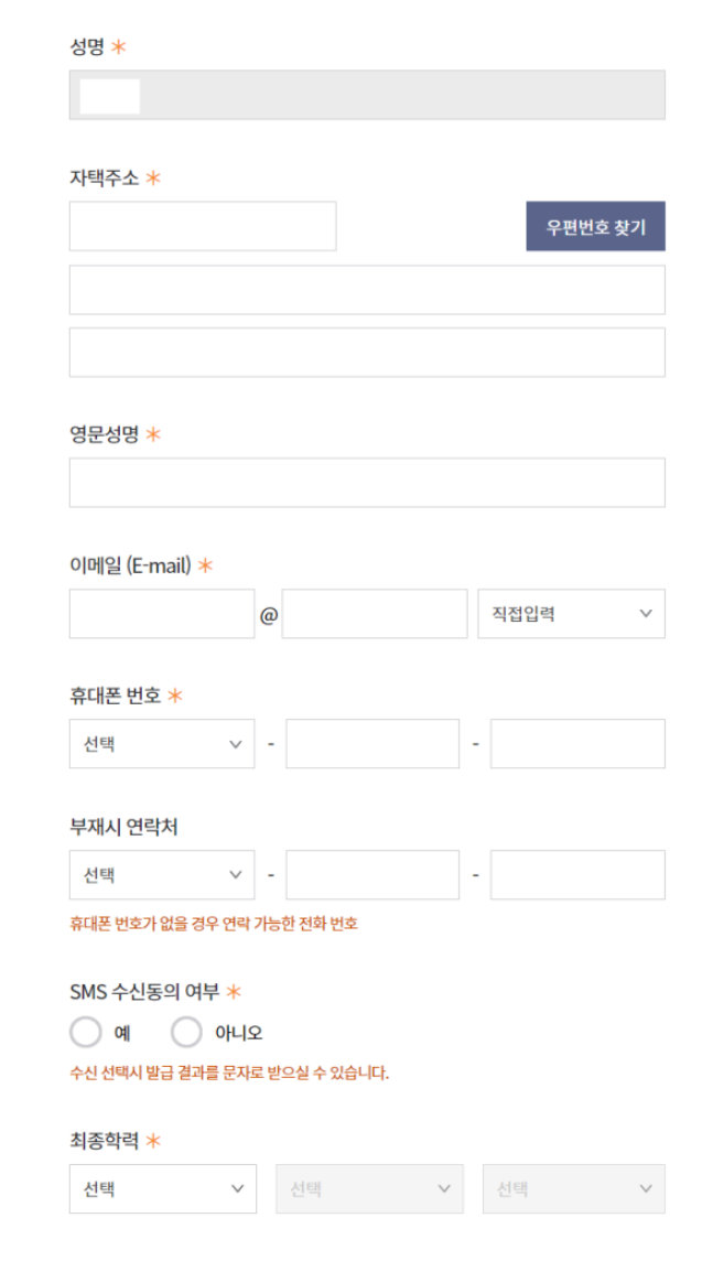 7. 배송지 정보 입력 후에 훈련과정 탐색 및 담아두기 클릭