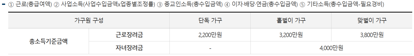 > 총소득금액: 신청인과 배우자의 다음의 소득을 모두 합한 금액