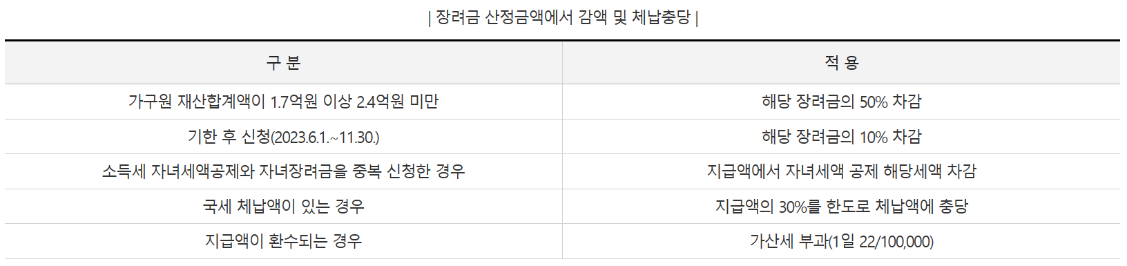- 가구원 구성에 따라 부부합산 총소득금액이 기준금액 미만이어야 하며 총급여액 등에 의하여 장려금을 산정합니다.