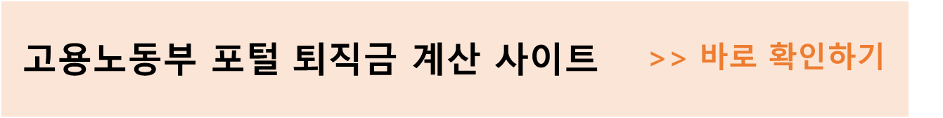 - 위 내용으로 계산이 귀찮으신 분들은 고용노동부 계산기를 활용하는 방법도 있습니다. 인터넷 검색창에 고용노동부를 검색하시면 퇴직금 고용노동부 포털이 있는데, 해당 포털을 클릭한 후에 입사 일자, 퇴사 일자, 퇴사 전 3개월 급여 등을 넣어주면 자동으로 계산되어 편리합니다. 필요하신 분들을 위해 링크도 함께 남겨드립니다.