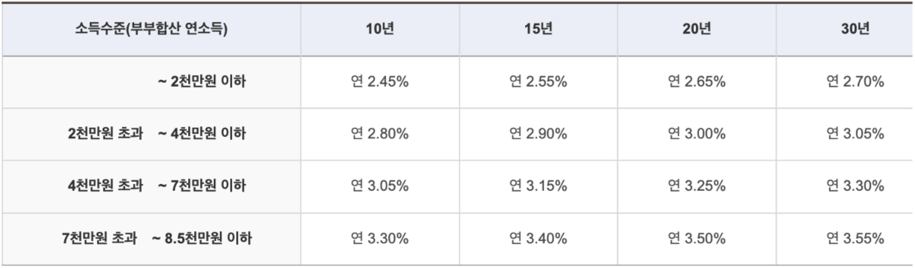 - 다자녀가구 연 0.7% / 2자녀 가구 연 0.5% / 1자녀 가구 연 0.3%